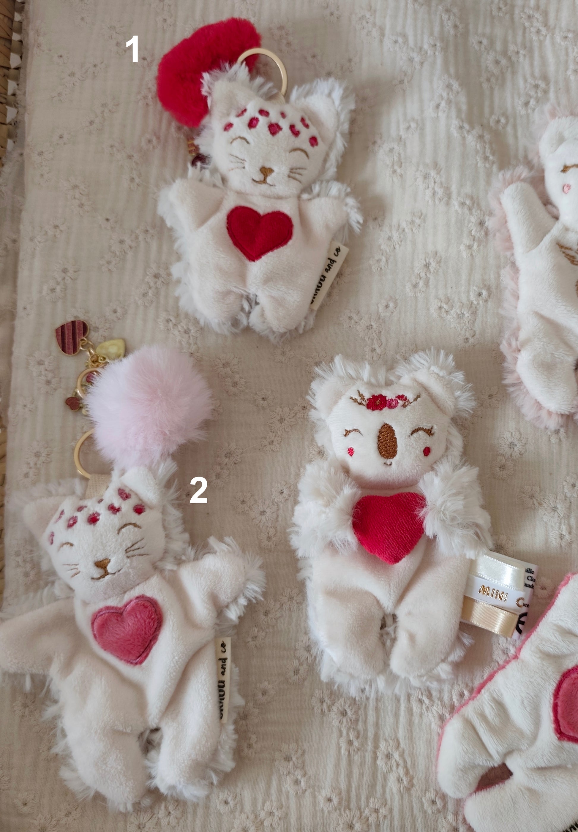 J’ai commandé un doudou pour ma fille qui l’a adoptée instantanément ! J’ai dû repasser commande et j’en ai profité pour acheter une couverture de la même gamme été et hiver, juste magnifique Elle les adores et ne les quittent plus Les détailles, la qualité est top. Ils passent en machine et ne bougent absolument pas. Encore un grand merci ma fille est aux anges avec vos confections du tonnerre